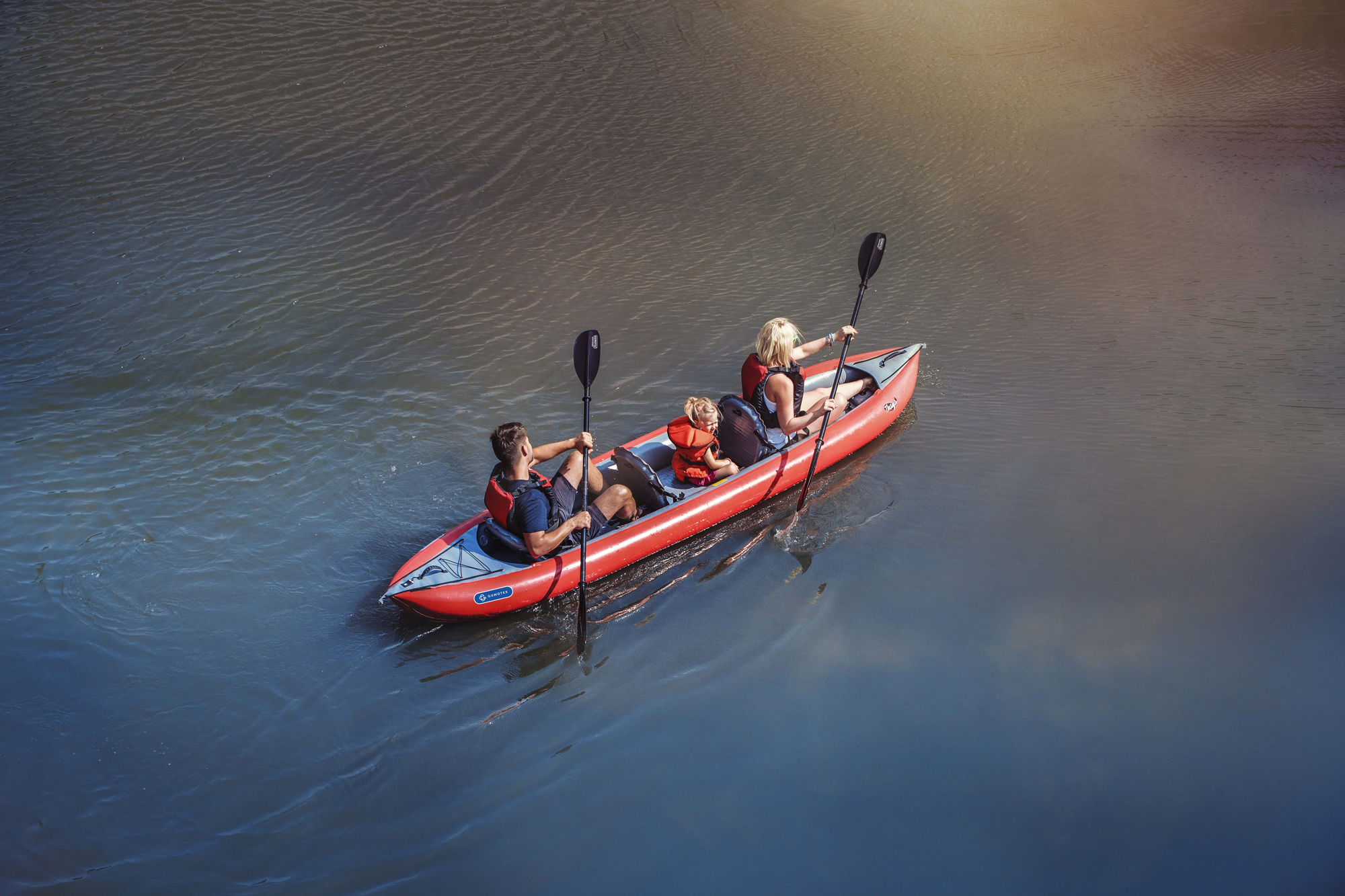 The Thaya brings together the latest drop stitch technology used in inflatable kayaks with the durable Nitrilon material from Gumotex. The Drop Stitch technology allows for floor chamber and seats to be inflated to a high pressure, providing levels of rigidity to rival that of a solid craft. This gives excellent levels of performance with less flex along the hull whilst paddling. The seats provide good levels of back support for a comfortable day paddling.